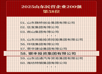銀豐地產集團有限公司成立于2001年4月,注冊資本15億元,具有國家房地產開發企業一級資質。銀豐地產創立之初即確立公司精品發展戰略,秉持誠信與品質的保證的經營理念,現已成長為有實力、有影響、有價值的房地產開發企業,并躍居山東本土房地產領軍企業。 銀豐地產集團秉持“誠信卓越、精品永恒”之理念,堅持綠色環保、創新驅動之可持續發展經營策略,以創新產品線和精品戰略拓寬企業發展空間,產品形態涵蓋高端住宅、別墅等住宅系列,同時涉及高檔寫字樓、企業孵化器、綜合類項目的開發和營造。堅持“戰略+機遇”的土地拓展原則,以濟南為核心,先后拓疆青島、臨沂、德州、淄博、寧波等城市。目前,已竣工面積達900萬平方米,在建工程面積約400萬平方米,形成了以房地產開發、建筑工程項目管理、裝飾裝修、房屋租賃、物業管理為主的完整產業鏈條。